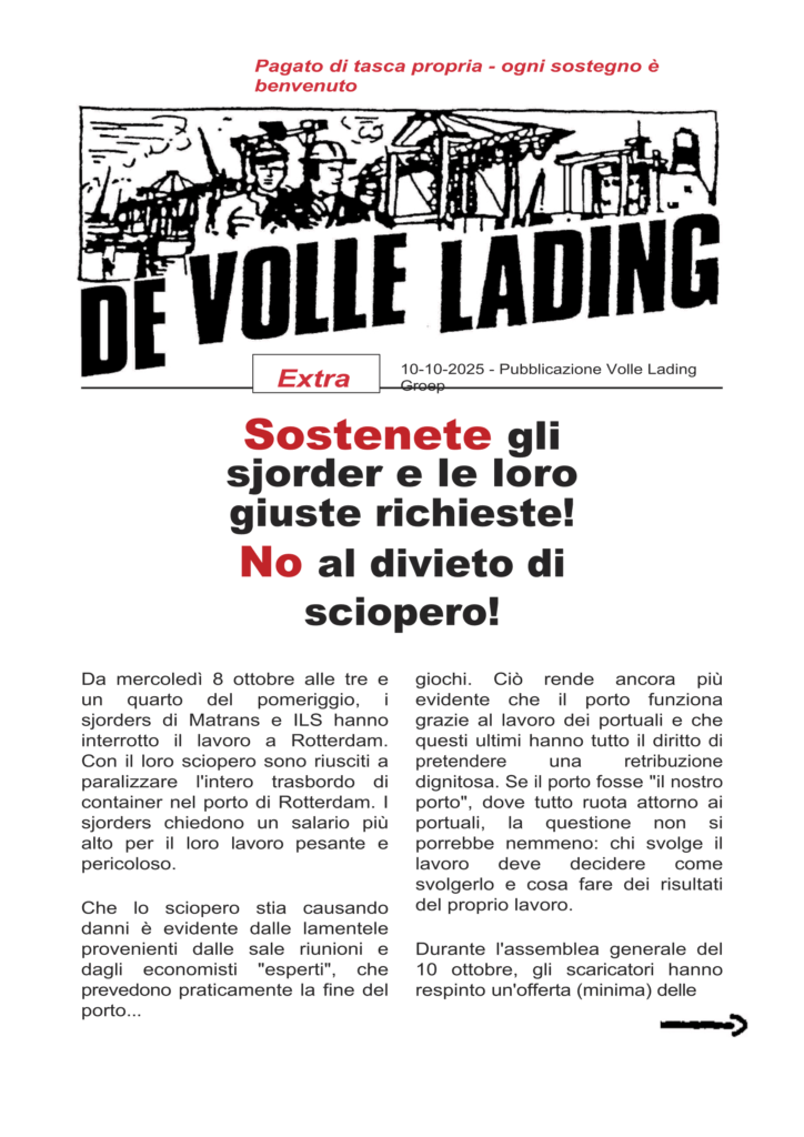 2. Lunedì mattina, 13 ottobre 2025, alle ore 07:00, l’azione collettiva sarà sospesa. L’azione riprenderà venerdì mattina, 17 ottobre 2025, alle ore 07:00. Da lunedì alle ore 07:00 a venerdì alle ore 07:00, il lavoro riprenderà normalmente.