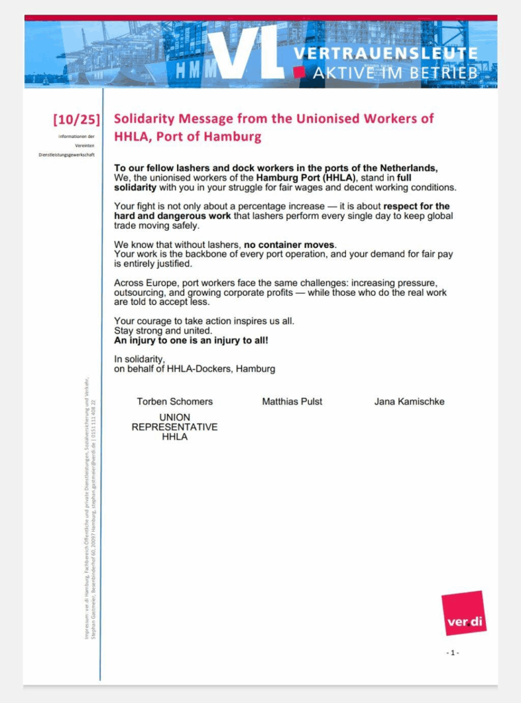 Solidaritätserklärung von ver.di Vertrauensleuten der HHLA (Hamburger Hafen und Logistik AG)
