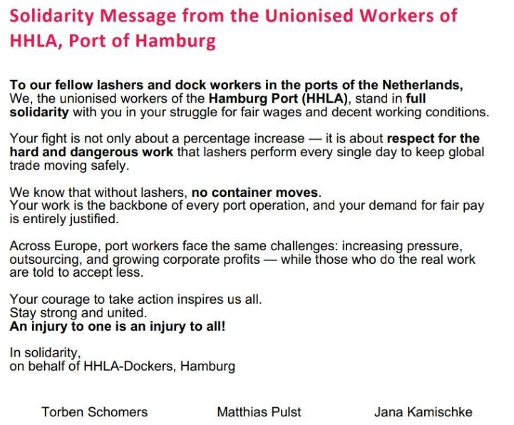 Solidaritätserklärung von Vertrauensleuten der HHLA (Hamburger Hafen und Logistik AG)