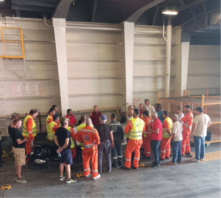 Vor einer knappen Woche verhinderten die Seeleute, dass Container mit Munition an die faschistische Israelische Regierung verladen wurden. Stolz berichteten sie, dass sie sich nicht nur für sich und das palästinensische Volk eingesetzt haben. Sie haben auch verhindert, dass der Container in der Herbsthitze explodiert, als er von Nordmazedonien mit einem LKW durch ganz Griechenland transportiert wurde. Mit Wissen von EU und griechischer Regierung!
