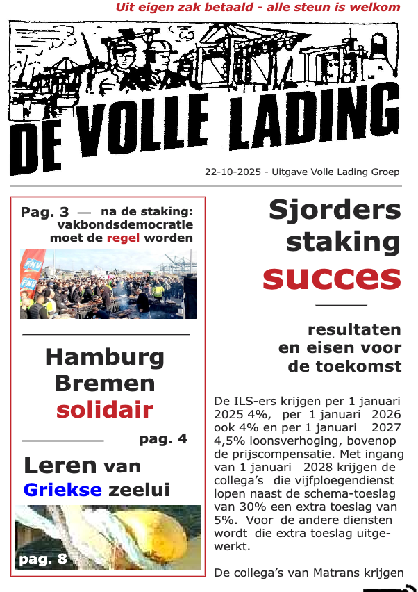 Wij staan aan de zijde van het Oekraïense volk, de arbeiders, de gezinnen, de havenwerkers in Odessa en Marioepol. En aan de zijde van de vredelievende mensen in Rusland, we hebben veel respect voor de anti-oorlog acties daar! In Rusland, net als in Oekraïne, werden en worden de rechten van werkers met voeten getreden. Oekraïne is een land dat rijk is aan grondstoffen en landbouwproducten – en toch is het een van de armste landen van Europa. Het moedige verzet van het volk in Oekraïne heeft een perspectief nodig: de solidariteit van de werkers kan een staakt-het-vuren afdwingen, kan een einde maken aan de oorlog en aan het onbeschrijflijke lijden en de vernietiging.